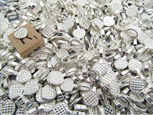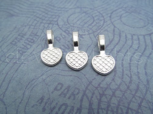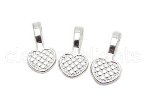 50 CleverDelights Heart Bails - 20x10mm - Shiny Silver Color - Medium Glue On Bails - Scrabble Glass Pendants Craft Heart Bails - 3/4 x 3/8 inch 20mm x 10mm