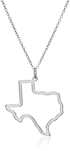 Rhodium Plated Sterling Silver Cutout Texas State Pendant Necklace, 18"