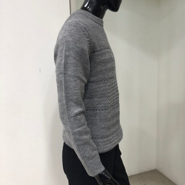 남, 여 공용으로 착용 가능한 변형조직 스웨터 입니다. 여러 조직을 믹스하여 심플하면서도 유니크한 코디가 용이한 스웨터 입니다. 남자분의 경우 한 치수씩 낮게 구매하시는 것을 권장해드립니다.