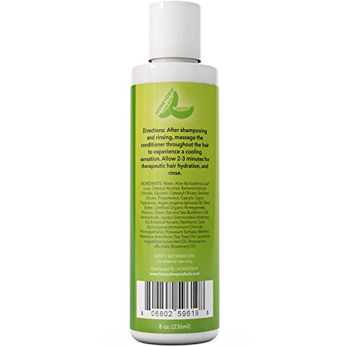 This moisturizing hair conditioner provides you with a cooling minty tingle which refreshes and restores your hair using a host of handpicked botanicals. This oil infused conditioner contains a nourishing blend of conditioning herbs and essential oil Vitamins for a hydrating hair treatment that heals your hair from the inside out. This moisture therapy conditioner contains 100% pure Jojoba Oil, Argan Oil, Shea Butter, Organic Pomegranate Hibiscus, Green Tea, Sea Buckthorn, Silk Amino Acids, Botanical Keratin, Tea Tree Oil, and Rosemary Oil. All of these work in synergy to provide the hydration and nourishment for health and fast hair growth.
