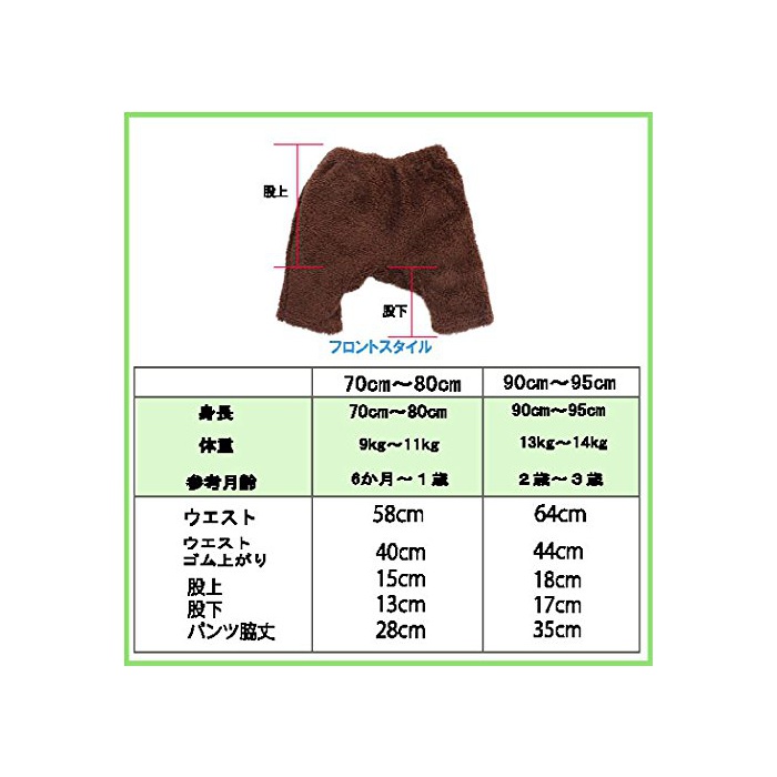 원본상품명: 【くまパンツ】シャギ?フリ?ス耳付パンツ-こげ茶 (70-80)