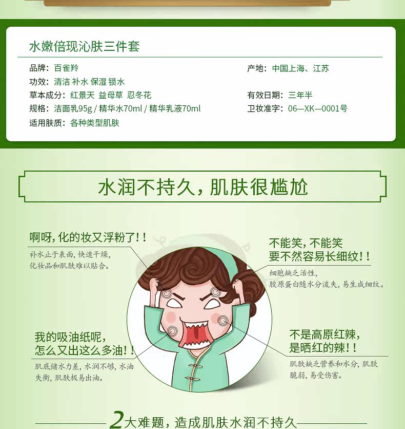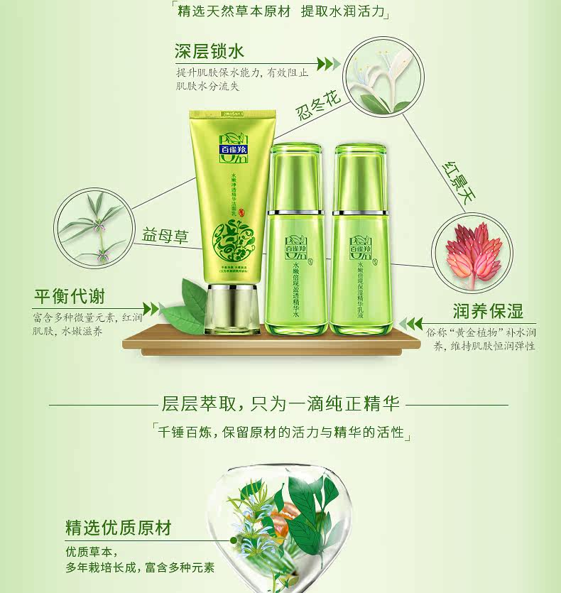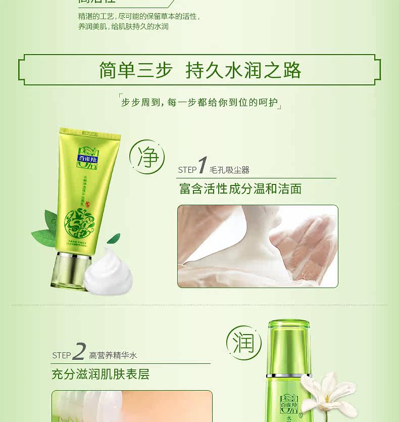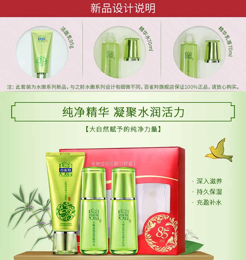 百雀羚沁肤套装 (洁面+水+乳 )化妆品套装女补水