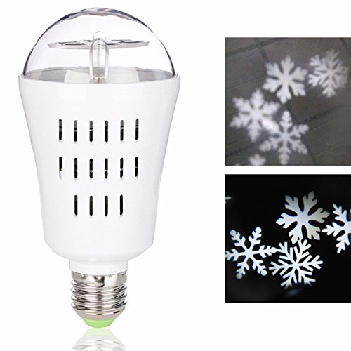Jeteven LED Project Light Bulb, Auto Rotating Projection Night Lamp 4W 4 LEDs E27 Base for Holiday Christmas Party DJ Disco Stage Show Home Kids Room Decoration White Snowflake