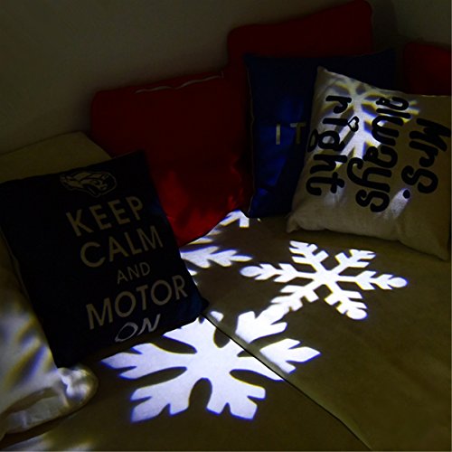Projects images of snowflakes onto any wall or flat surface. Creates an instant atmosphere for parties and entertaining