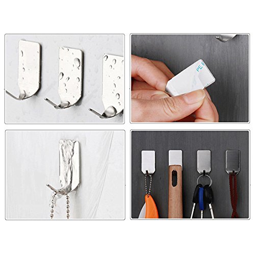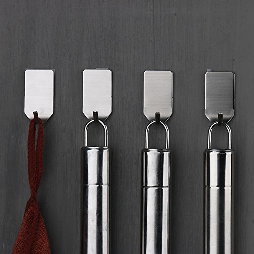 8 Pcs 3M Self Adhesive Wall Hooks Towel Hooks, Brushed Stainless Steel Bathroom Kitchen Robe Hook (Silver, Ropin)