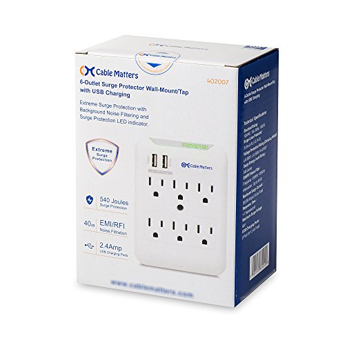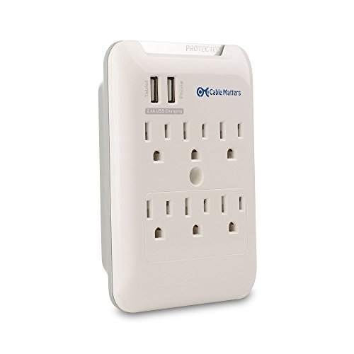 Cable Matters 6-Outlet Wall Mount Surge Protector with 2.4A Dual USB Charging (Updated Version with Dimmed LED Light)