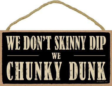 (SJT94129) We don't skinny dip We chunky dunk 5" x 10" wood sign plaque