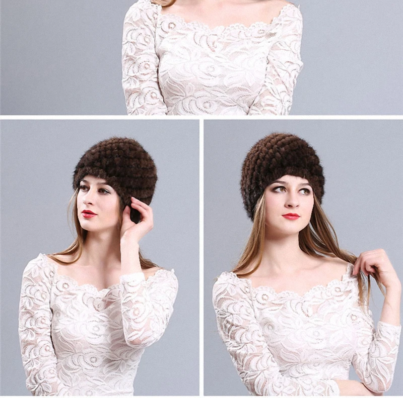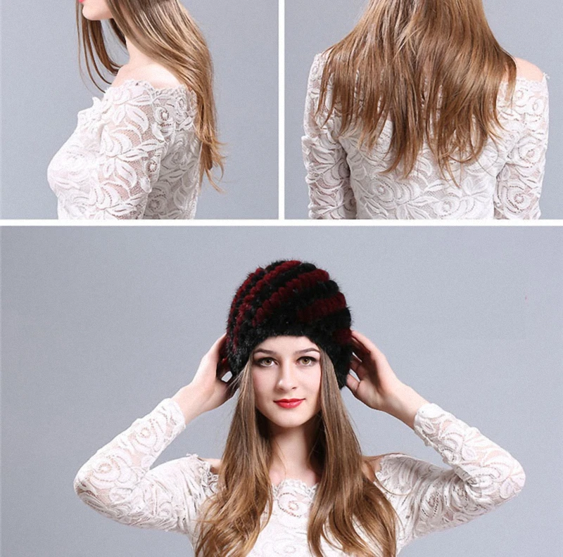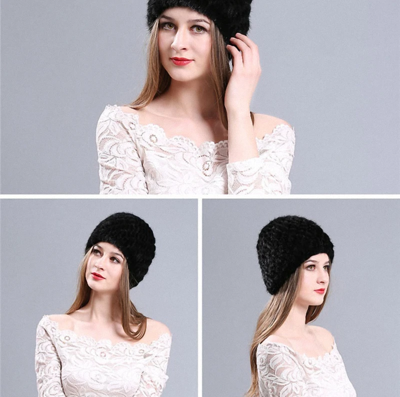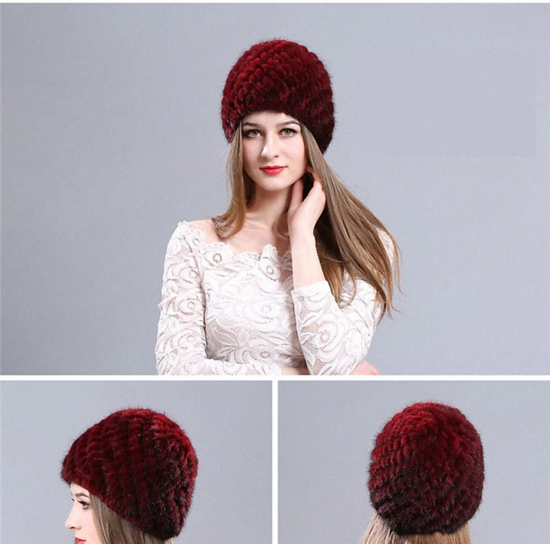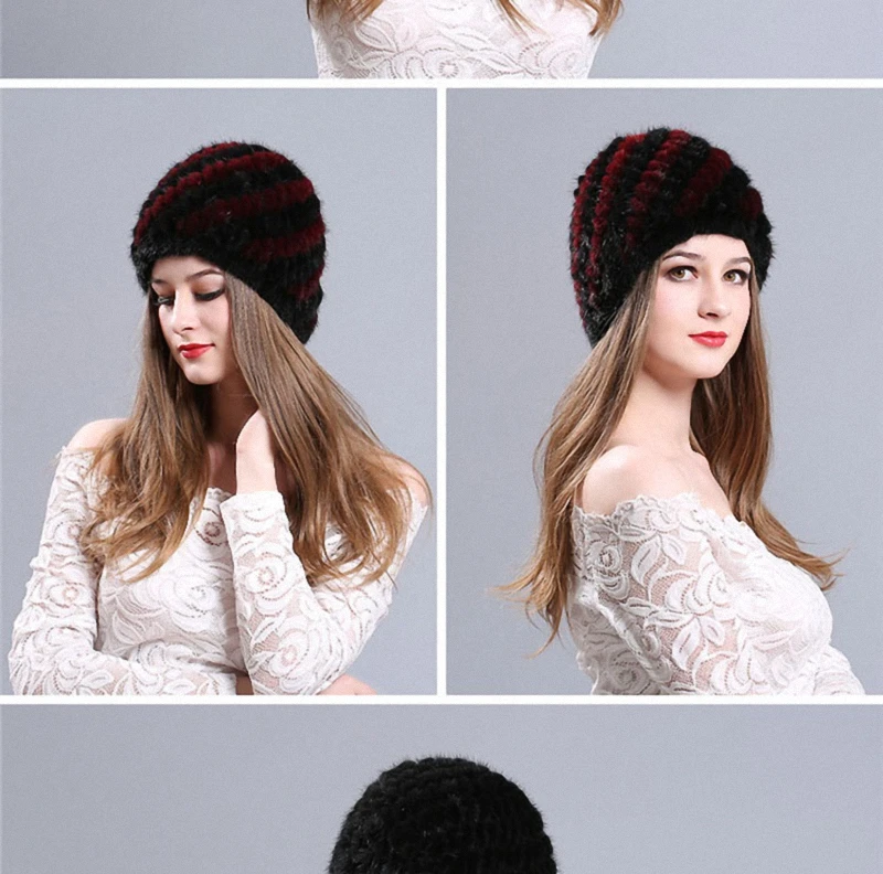 | [해외]모피 모자 100% 천연 밍크 모피 모자 여성 남성 니트 비니 모자 겨울 눈 모자 패션 따뜻한 파인애플 캡 H009-RB |