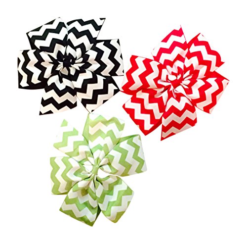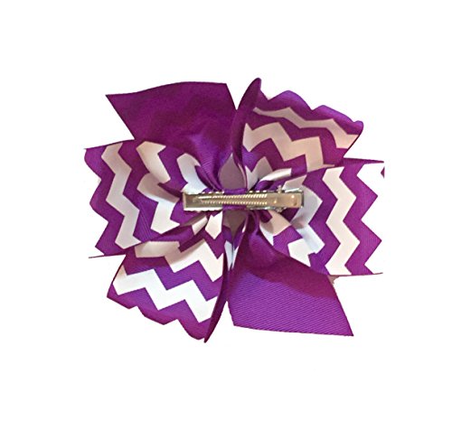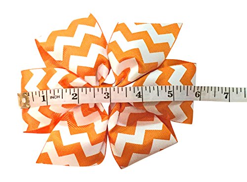 This beautiful bow gift set is a perfect accessory for any girl and makes a great gift. These bows are 6" wide and are made from grosgrain ribbon and is mounted on a flat alligator teeth clip. You will be able to easily attach to hair or on a headband. You will receive a total of 6 bows in green, pink, black, purple, aqua, and orange with a beautiful white chevron print.Feature