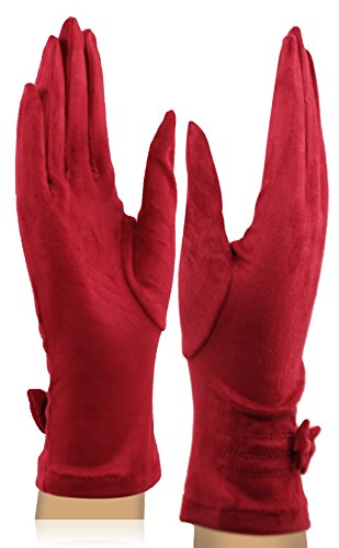 -. Feature : Cotton Gloves.Make of 80% Cotton 20% Polyester. Soft,Warm,Lightweight. Length: 9 inches, Width: 3 inches / Excellent Touchscreen Performance Gloves. Precise Positioning,Smooth Operation. / Slimming Design. Thin but warm gloves,Keeps your hands warm without being bulky! / Dress Gloves.Simple and stylish design goes great with casual and dressy looks. / Stretchy Gloves.One size,very stretchy wool blend fits most,don't worry about the size.