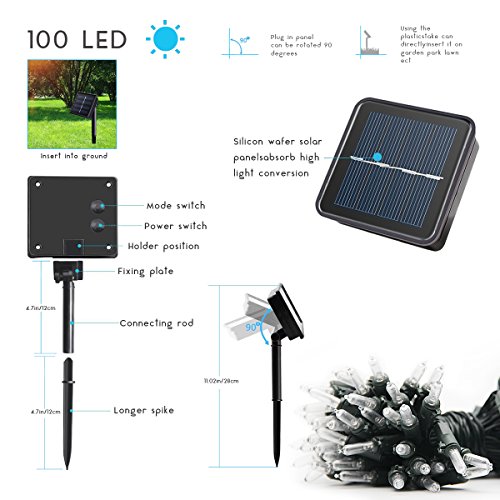 Specification - 12m/39ft length, 100pcs LED lights with 8 lights modes from steady to various flashing.