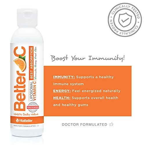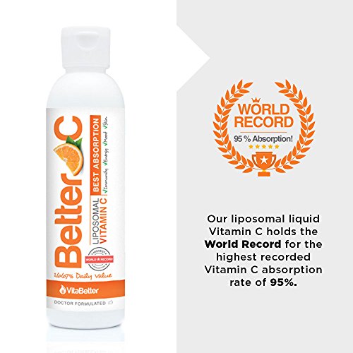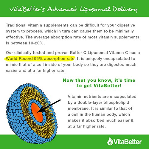 UNLOCK THE TRUE POWER OF VITAMIN C: VitaBetter Better C, a clinically-tested and ground-breaking liposomal Vitamin C, has a world record absorption rate of 95-percent (compared to 10-20 percent absorption for most oral vitamins). You are actually getting what you pay for. The absorption and efficacy of our Vitamin C is equivalent to that of an IV. No needle, same results.