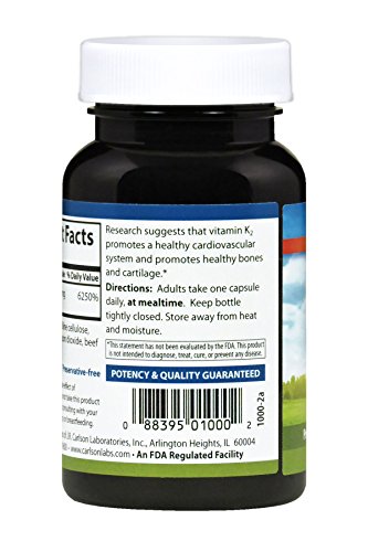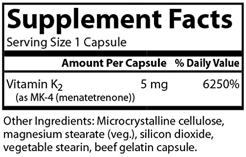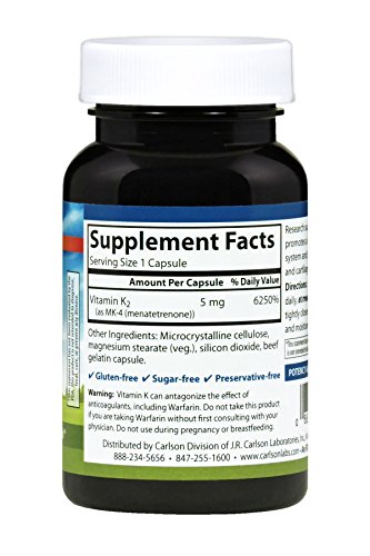 Research suggests vitamin K2 as MK-4 promotes healthy bones and supports cardiovascular system health. Carlson Vitamin K2 provides 5 mg of vitamin K2 as MK-4 in each capsule.