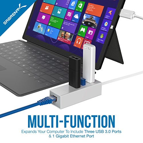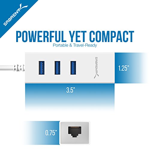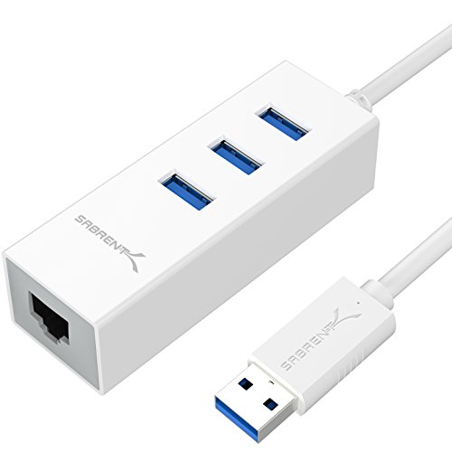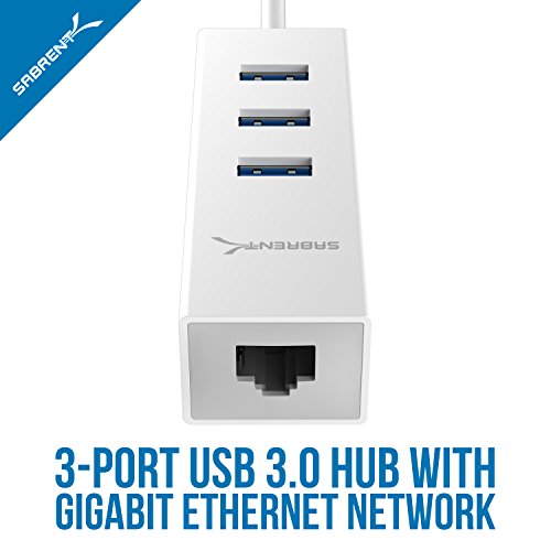 Sabrent 3-Port USB 3.0 and RJ45 10/100/1000 Gigabit Ethernet Port [Built-in 1ft USB 3.0 Cable] (HB-NTUW)