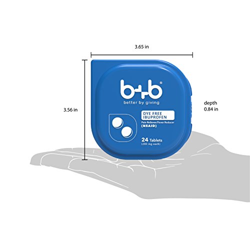 Studio : Breeden Brothers Publisher : Breeden Brothers Product Description b b Dye-Free IBUPROFEN Tablets are a safe and effective FDA-approved pain reliever and fever reducer made in the US. This Product contains no artificial food dyes. When taken as directed, this Product temporarily relieves minor aches and pains due to headache backache toothache menstrual cramps muscular aches the common cold minor pain of arthritis AND temporarily reduces fever. Each innovative package is designed to fit right in the palm of your hand and contains 24 tablets at 200 mg each. This CHILD RESISTANT blister pack also has rounded edges to prevent cuts and easy tear-off packaging for on-the-go travel. b b is a family-owned health and wellness company founded on the principle of one-for-one giving to others. For every product purchased, we donate one to someone in need. We work with Americares nationwide to provide donated medicines to over 1000 free clinics and rural health centers. Here is a link to more information on the program: https://bbcompany.com/page/americares-give-back-program #betterbygiving 0