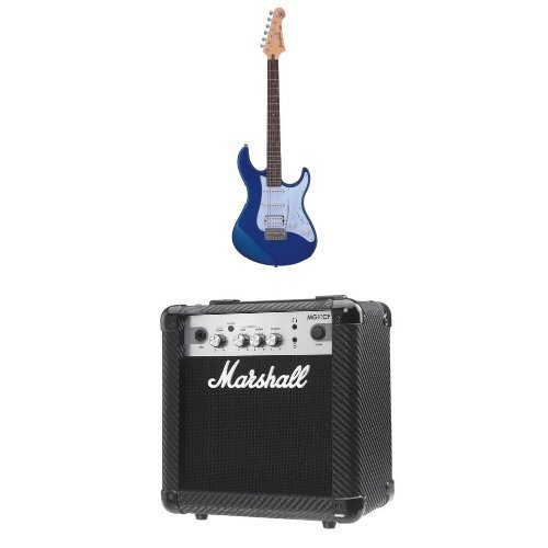 Yamaha Pacifica Series PAC012 Electric Guitar (Metallic Blue) with Marshall MG10CF MG Series 10-Watt Guitar Combo Amp