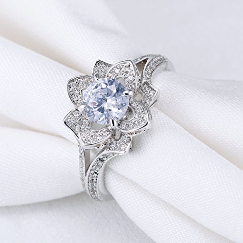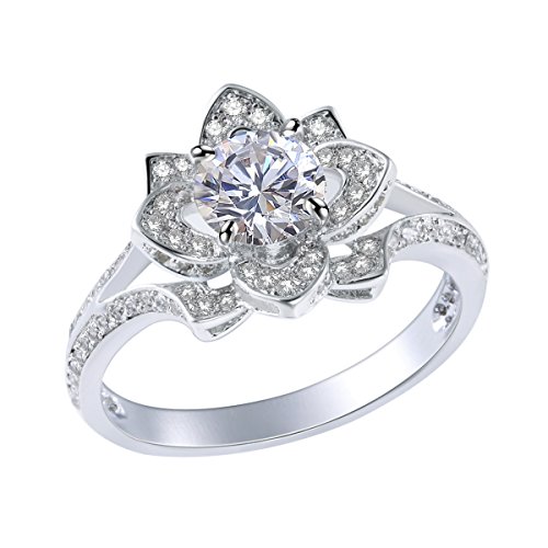 - Title : Newshe Jewellery 2.24CT Round White CZ 925 Solid Sterling Silver Flower Wedding Engagement Ring Size 8