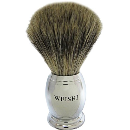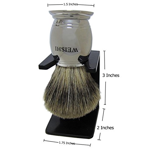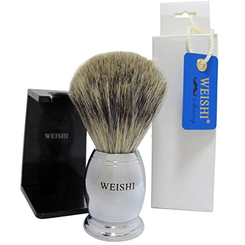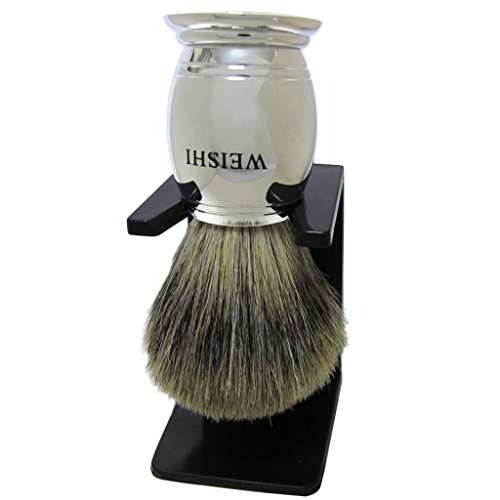 WEISHI SAFETY RAZOR 100% PURE BADGER SHAVING BRUSH CHROME HEAVY WEIGHT HANDLE WITH BLACK WEISHI DELUXE STAND.
