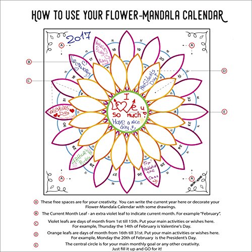 U & M |UNIQUE Magnetic Dry Erase Refrigerator Calendar | Smart Planner | Designed Large (16.5х16.5 inches) For Yoga Lovers - Mandala Organizer 2017 | Make a spiritual, creative and useful gift