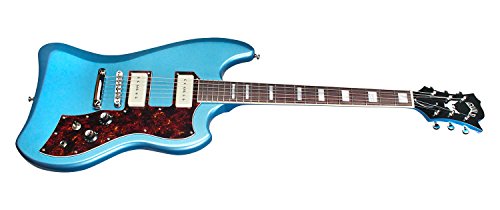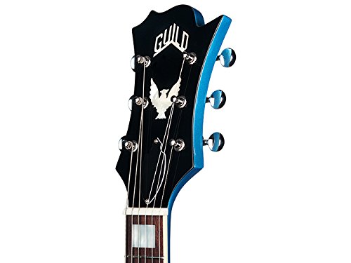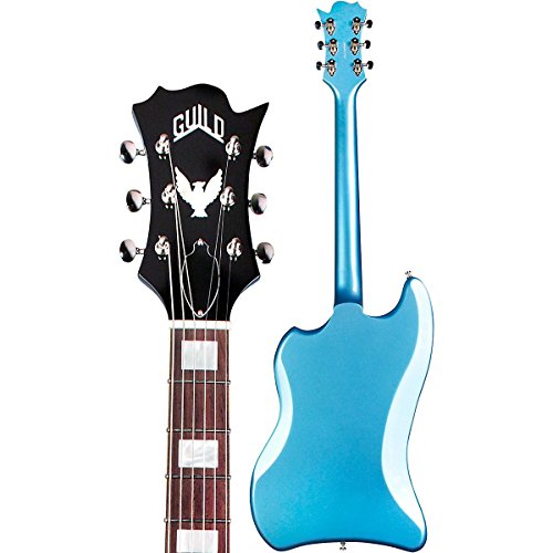 Studio : Guild Publisher : Guild Product Description Based on the S-200 T-Bird reissue, the T-Bird ST features the same unique, asymmetrical shape, but with a simplified feature set. Minimalist players will appreciate the added stability and reliability of a stopbar tailpiece and pared down electronic controls, while enjoying the T-Birds retro vibe. The dual Guild Franz P90 pickups found on the T-Bird ST P90 are perfect for the player looking for that crisp, vintage, single-coil sound, offering plenty of mid-range output that can be driven to a soaring classic rock tone. The T-Bird features a vintage C shape set mahogany neck, and bound rosewood fingerboard with mother-of-pearl block inlays. Other period-correct details include open gear vintage tuning machines, and famed asymmetrical headstock adorned with Guilds logo and Thunderbird icon in mother-of-pearl. Available in Pelham Blue; a padded Guild deluxe gig bag is included. 0