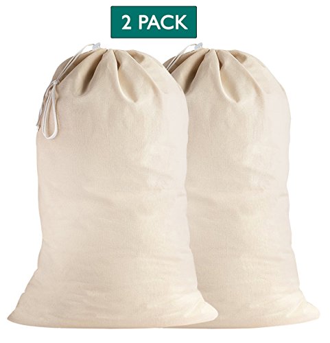 2 Pack, Laundry Bags in Natural Color, 28 Inches by 36 Inches - 100% Cotton Extra-Large Heavy Duty Laundry Bags by Lino Mantra - Highly durable, Draw-cord with cord-lock, Machine Washable and reusable