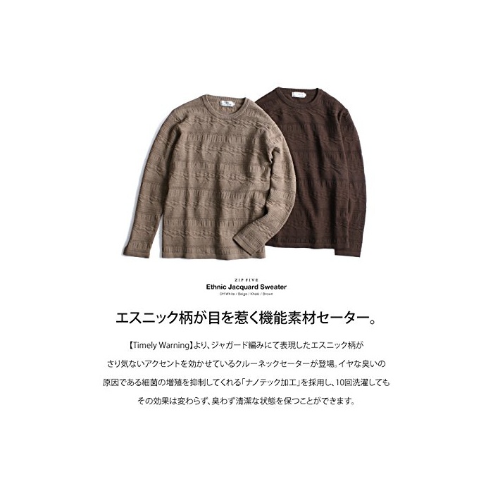 TIMELY WARNING -시기적절 warning [시기적절 warning]Timely Warning 나노 텍 가공 에스닉 자카드C/N스웨터 맨즈 d-7951013 오프 화이트 L