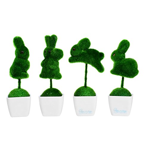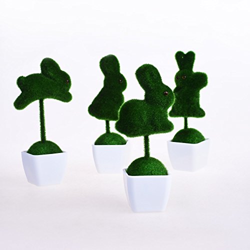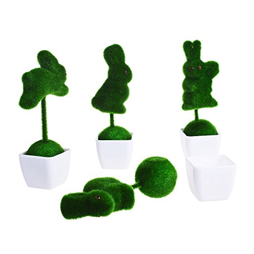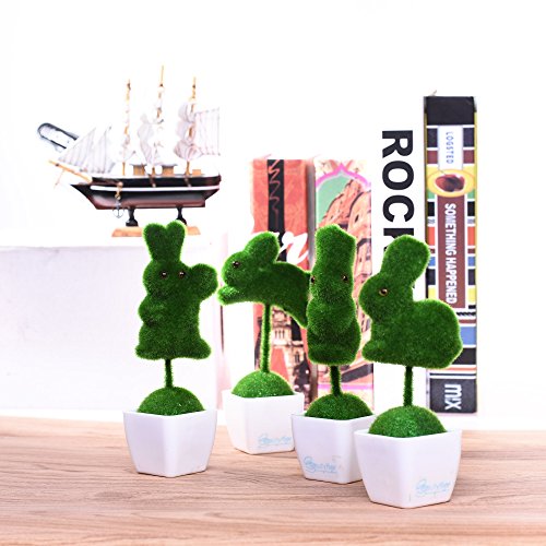 Kloud City 4Pcs Miniature Green Hedge Artificial Planter Faux Rabbit Figurine Micro Landscape Home Patio Desktop Decor
