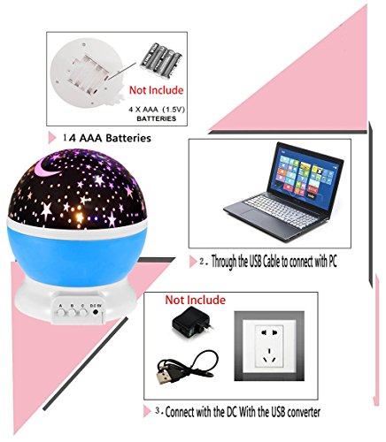 - ▶ Kids Room Decor --This Baby night light is very convenient to use, just powered by USB cable with your cell phone charger or power bank and laptop,also powered by 4 AAA batteries(not included)