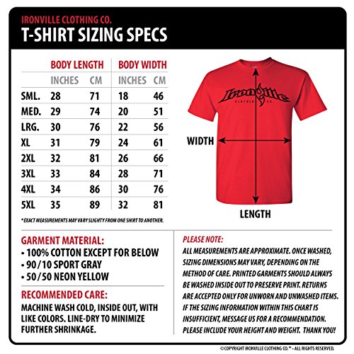 -. Binding : Apparel -. Brand : Ironville Clothing Company -. Department : mens -. Feature : 100% cotton - See our custom size chart in the image gallery before purchasing / FREE shipping in the USA with no minimum purchase / Artwork designed & hand printed IN-HOUSE exclusively by Ironville in the USA / Established in 2005, Ironville Clothing is an annual exhibitor at the Arnold Sports Festival -. ProductGroup : Apparel -. ProductTypeName : SHIRT -. Title : Ironville Lift Hard Die Strong Bodybuilding T-Shirt