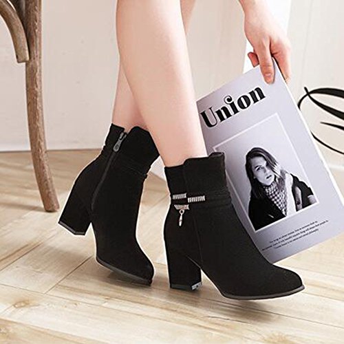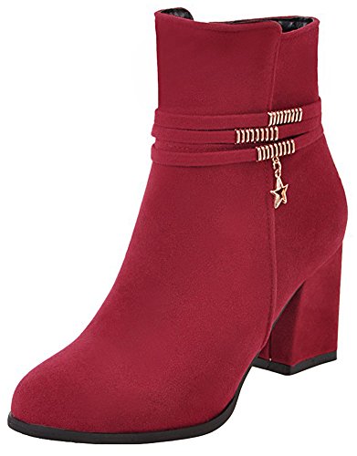 (Mofri)/Women's/Boots/DIRECT FROM USA/Mofri Women's Stylish Faux Suede Cross Strap Pendant Side Zipper Ankle Booties Round Toe Block ...