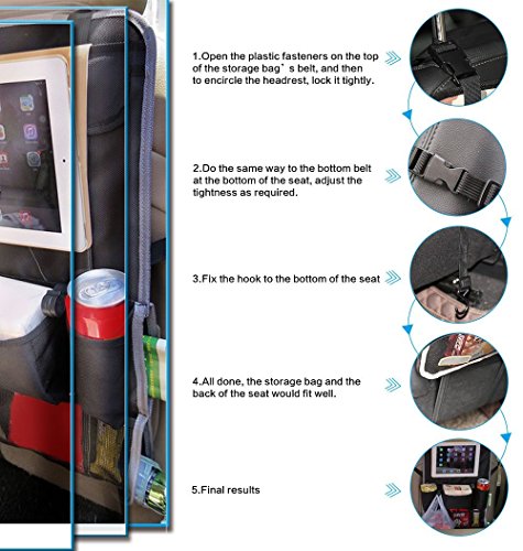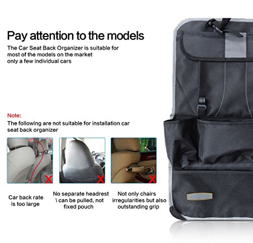 EASY TO INSTALL & USE: Easy to install, multiple fixation buckle design convenient for installment and fixation, no sliding or skewing exists when driving. Children can reach into pockets easily without assistance, universal system fits most seat back.