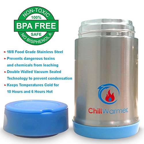 ChillWarmer Thermal Insulated 16 ounce Stainless Steel Food Jar - FunJar (SS blue)