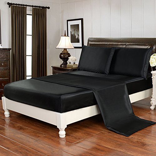 Queen size: Flat sheet 90x102 inch, Fitted sheet: 60x80+15 inch, Pillowcases: 2x20x30 inch hem. Fitted sheet has elastic all around to stretch, fits mattresses up to 17" deep