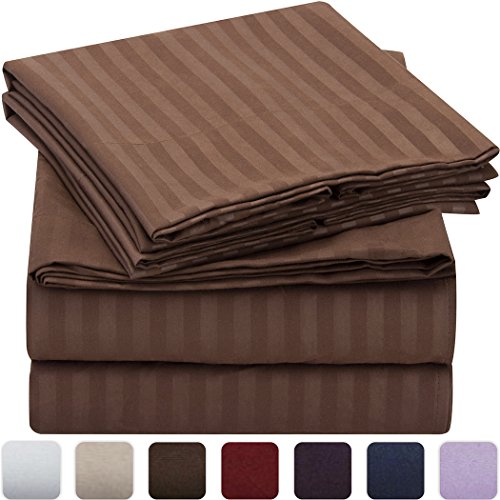 Full Size Luxury Striped 4pc Bed Sheets Set - 1 flat sheet 81”x96”", 1 fitted sheet 54" x 75", 2 pillowcases 20"x30". Deep pocket fitted sheet with elastic all around (not just the corners, like other sheets). Fits mattresses up to 16"