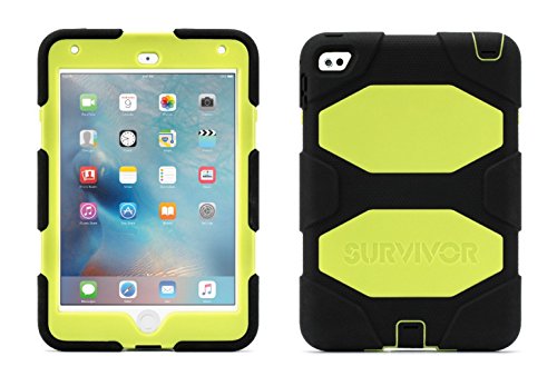 Griffin iPad mini 4 Case with Stand, Black and Neon Yellow Survivor All-Terrain, [Rugged] [Protective] [Dual Layer] [Heavy Duty] [Shock Absorption] [Polycarbonate] [Silicone]