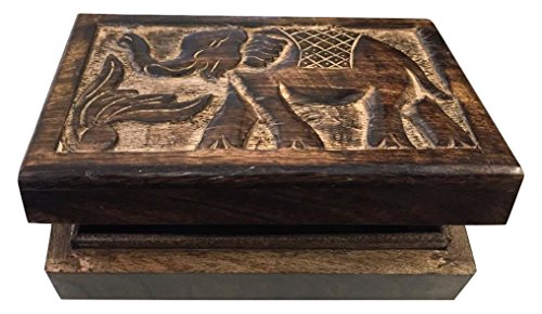 StealStreet SS-IA-WB441 5 inch Hand Carved Mango Wood Elephant Box