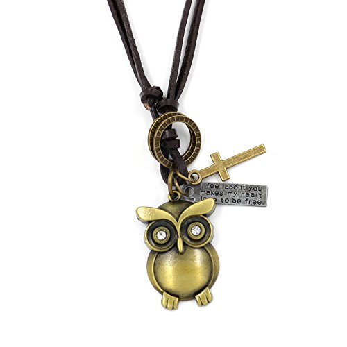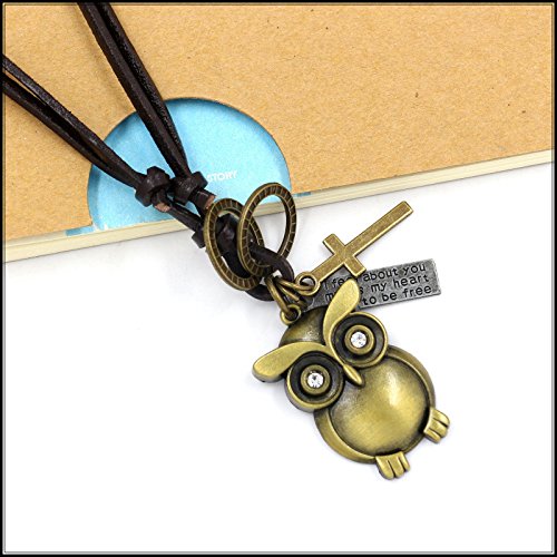 -. Title : Scratch Mens Girls Vintage Alloy Owl Cross Pendant Leather Cord Necklace Chain