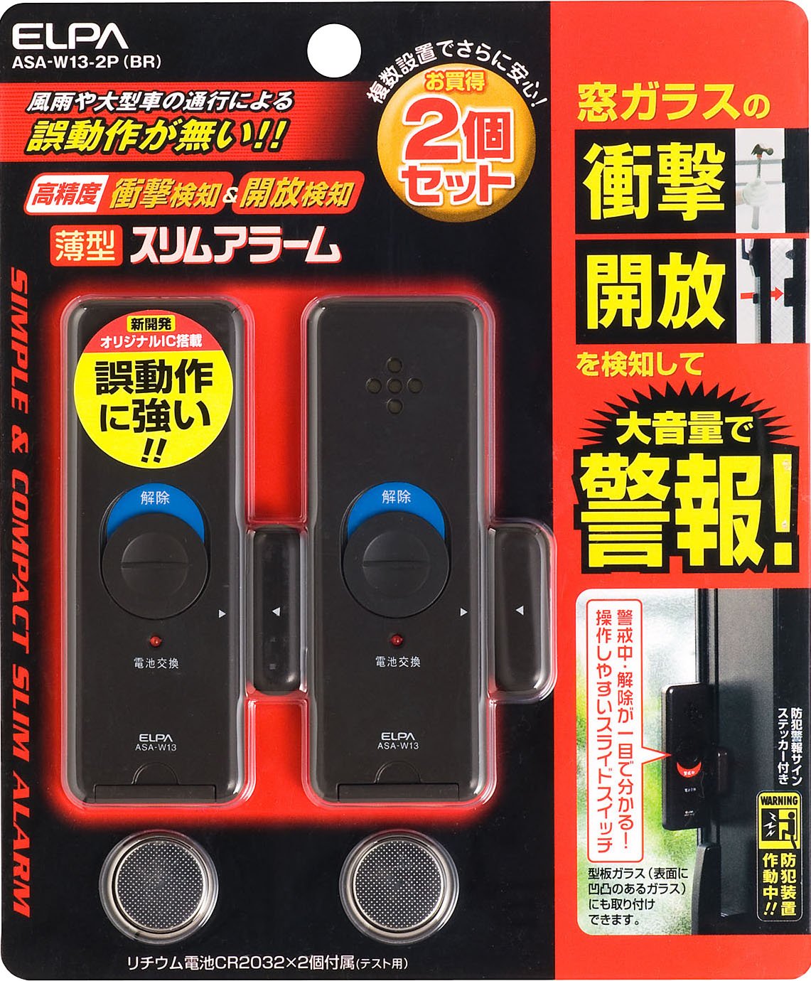 ELPA thin alarm double detection 2P Asahi Denki 【product number】 ASA-W13-2P (BR)