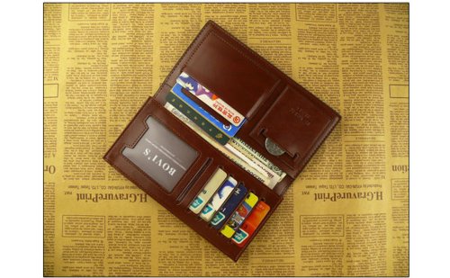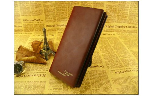 - Title : Mens Wallet Brown Genuine Leather Long Purse Billfold Moneyclip
