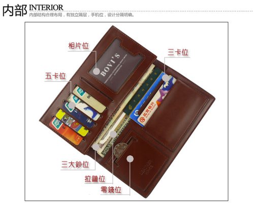 - Feature : Mens Wallet Long Purse Billfold / Genuine Cow Split Leather and Synthetic / Classic Design / Brown Colour / 183x95mm Size