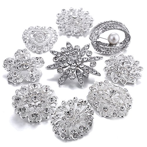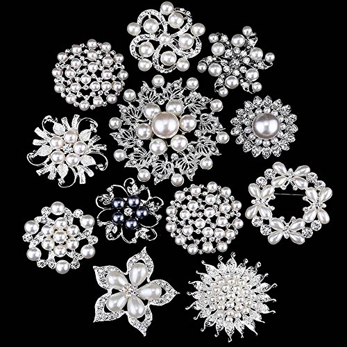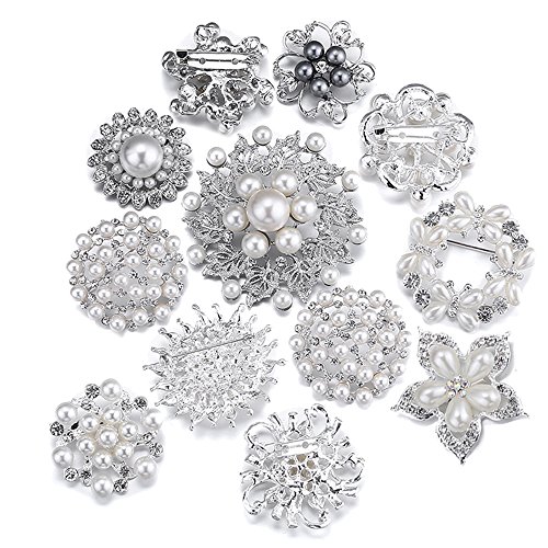 -. Feature : Quantity:Lot of 9/12/15/20pcs, Silver Plating, mixed sizes and different styles.Note:Color and style may be random. / Material: Rhinestone Crystals and high quality zinc alloy +pearl / Easy fasten clip on its backside to provide strong hold to any cloth surface.You can also add it to a hair-band,bag,hat,shoes,alligator clip,hair comb,sash,wedding ring bearer pillow,wedding bouquet,flowers. / Intended Use: Wedding bouquet/ Party/ Prom/ Valentine's Day/ Mother's Day/ Thanksgiving Day/ Christmas/ New Year/Graduation/ Anniversary/ Birthday/ Holiday/ Daily Wear/ Casual/ Gift etc. It works for every woman in every occasion. / Your best source for Silver Plated Crystal & Rhinestone Brooches. Great for adding a touch of creativity to your wedding bridesmaid's, flower girl's dresses, a stylish hat, a hair accent or even your wedding cake.