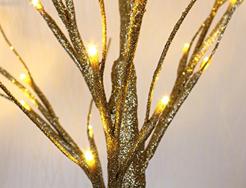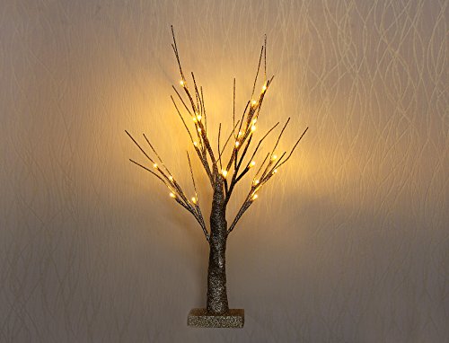 Bolylight LED Bling Bling Birch Night Light Table Tree Lamp Jewelry Holder Centerpiece 17.71 inch 24L Great Decoration for Home/Christmas/Party/Festival/Wedding, Warm White, Gold