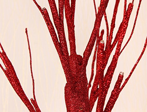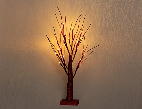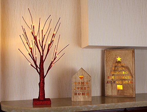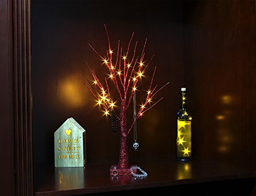 Bolylight LED Bling Bling Birch Night Light Table Tree Lamp Jewelry Holder Centerpiece 17.71 inch 24L Great Decoration for Home/Christmas/Party/Festival/Wedding, Warm White, Red