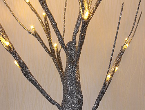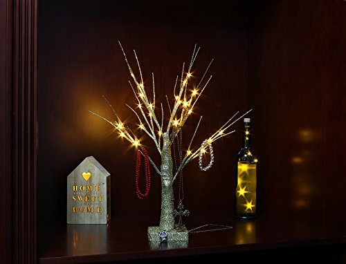 Bolylight LED Bling Bling Birch Night Light Table Tree Lamp Jewelry Holder Centerpiece 17.71 inch 24L Great Decoration for Home/Christmas/Party/Festival/Wedding, Warm White, Silver