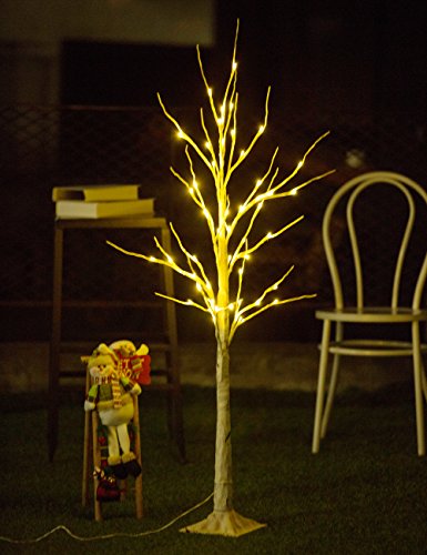 Bolylight LED Birch Tree 4ft 48L LED Christmas Decorations Lighted Tree Decor for Bedroom/Party/Wedding/Office/Home Outdoor and Indoor Use Warm White