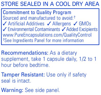 -. Binding : Health and Beauty -. Brand : Pure Encapsulations -. Label : Pure Encapsulations -. Manufacturer : Pure Encapsulations -. ProductGroup : Health and Beauty -. ProductTypeName : HEALTH_PERSONAL_CARE -. Publisher : Pure Encapsulations -. Studio : Pure Encapsulations -. Title : Melatonin 0.5mg 180c