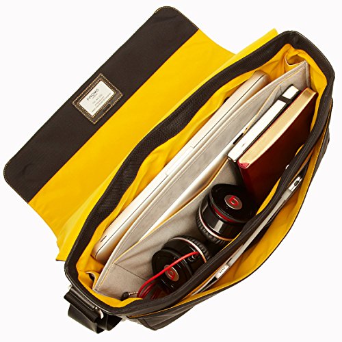 -. Binding : Apparel -. Brand : Knomo -. Color : Brown -. Department : unisex-adult -. Feature : Nylon lining / 25.5-Inches shoulder drop,12-Inches high,16-Inches wide / Zipper around the base and sides allows the main compartment to expand by 8 cm to provide more packing capacity for larger files / Easy access to smartphone and tablet on front pocket / Interior organizational panel for pens, business cards, etc. -. Label : Knomo Lage -. Manufacturer : Knomo Lage -. Model : 54-112 -. PackageQuantity : 1 -. ProductGroup : Apparel -. ProductTypeName : LAGE -. Publisher : Knomo Lage -. Size : One Size -. Studio : Knomo Lage -. Title : Knomo Lage Knomo Brompton Bungo Messenger Bag