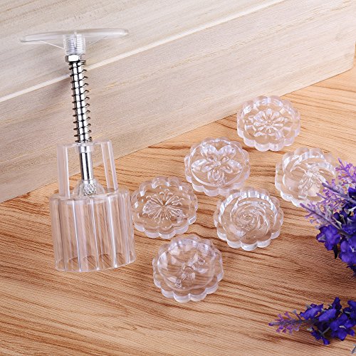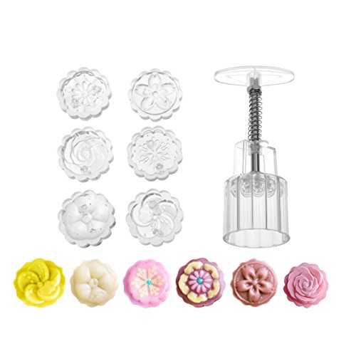 Kloud City Pack of 1 Traditional Vintage Mini Moon Cake Muffin Pastry Press Mold With 6 Floral Pattern Stamps For Cookie DIY Baking Décor Mid-autumn Festival
