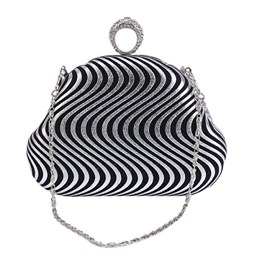 Product Description You are much mysterious with this fancy evening bag! This shell-shaped evening bag is made of premium metal. The front is covered with dazzling spire print. Fastened with ring-shaped snap. Inside is a main layer for you to carry phone, wallet or lipstick. This bag can be clutched by hands, hung as tote or cross the body with detachable chains. Bag measurement approximately: length 17.1cm (6.5 inches); width 6.5cm (2.6 inches); height 12.3cm (4.8 inches); shoulder strap 120cm (46.8 inches); short chain 35cm (13.8 inches). 0