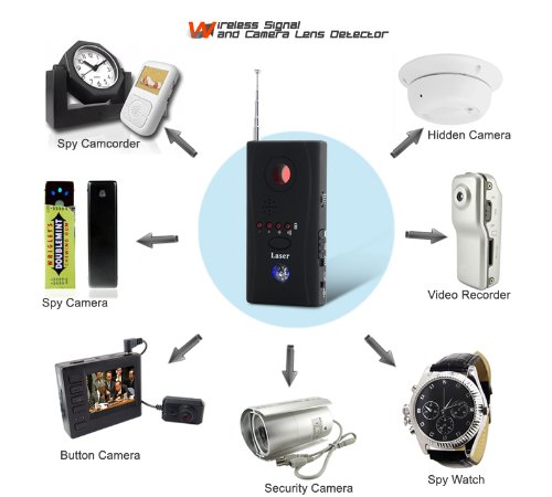 This Wireless Signal and Camera Lens Detector is an industry favorite and is commonly used by the military, casinos, banks, hotels, celebrities, police, private detectives, schools, train stations, and many others. Available in our warehouse now, order today and we'll express ship it out tomorrow! Brought to you by the leader in China Electronics - ankaka.Specifications Primary Function: Wireless Signal and Camera Lens Detector Material: ABS Power: Built-in rechargeable 450mAH li-ion battery Detecting Wave Distance: 920nm Receiving Range: 1MHz - 6500 MHz Detection Mode: Sound or Vibration On Board Buttons: - Retractable Antenna - Sensitivity /- Control - Power switch - Laser light switch - 3.5mm Earphone in - DC 5V in Power adapter: AC 110-240V, 50/60Hz Dimensions: L: 93 x W:46 x D:16 (mm) Notes from Manufacturers Detects whether or not your car or office has wireless listening devices installed Detects SMS send and receive signals, cell phone internet signals, and call signals Special dedicated optical lens filters Built-in Compass Detection of camera lens Detection of radio waves (wireless camera/listening device, etc.) This product ships with a universal wall socket adapter and will work anywhere in the world 0 |
